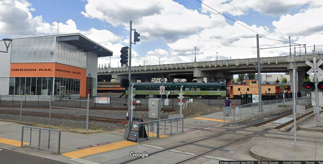 Oregon Rail Heritage Center, passing the Milwaukie UP Yard, and going over