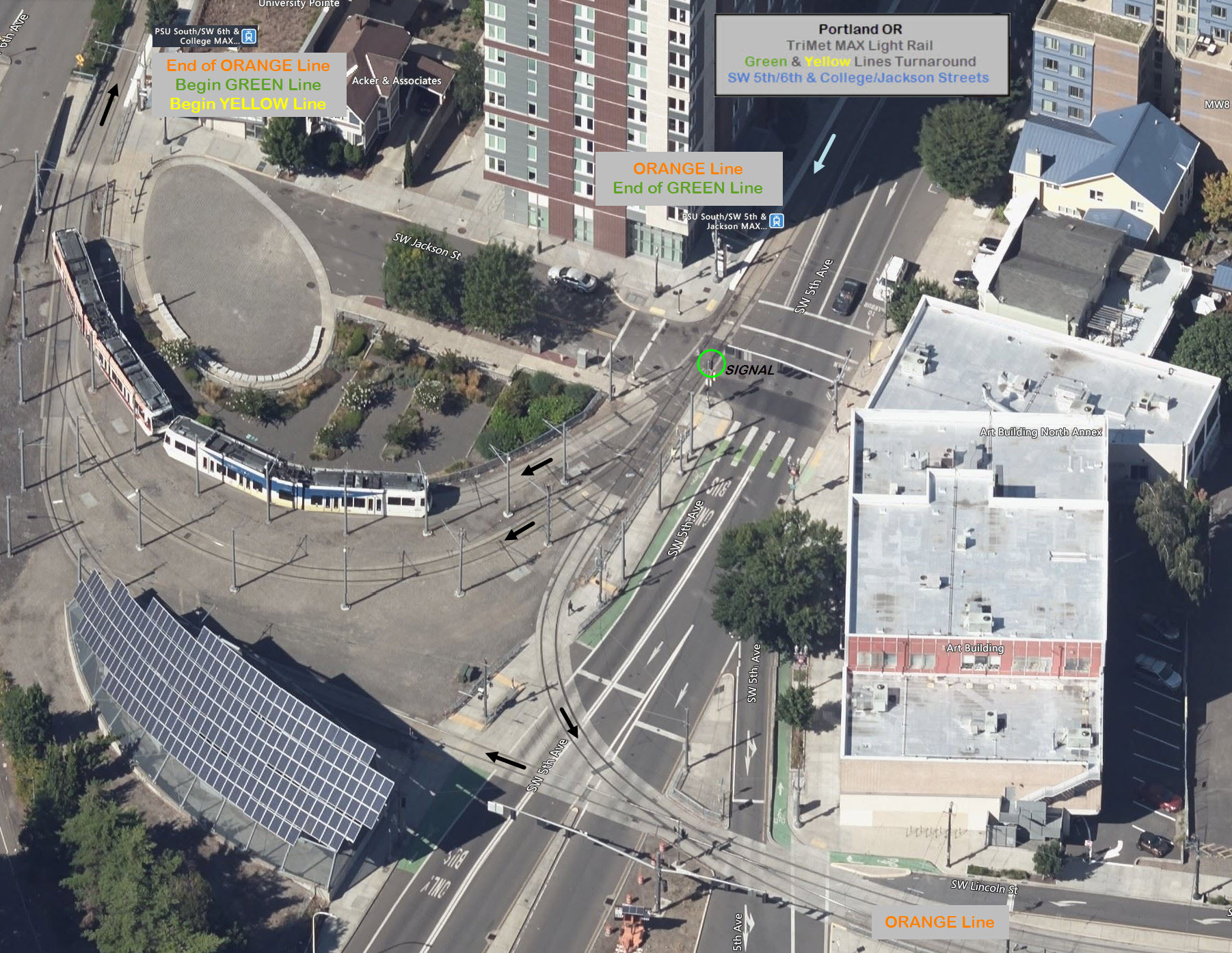 Line ends, and the Green and Yellow Lines begin. At the SB 6th Ave