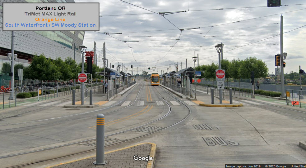 Portland Streetcar (in downtown Portland, SW Moody, and SE Water)