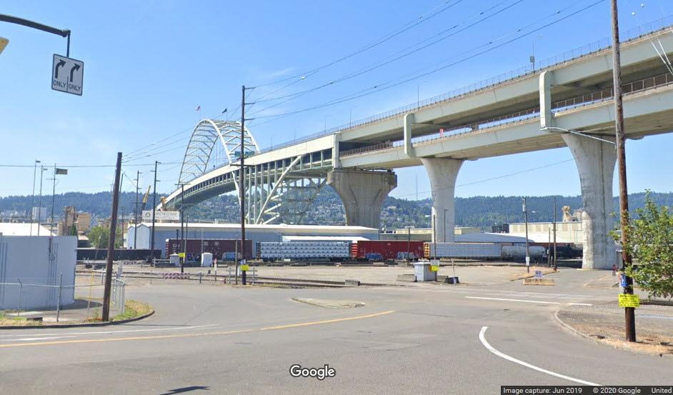 Just north of the Albina station, at Russell St, you pass by Union Pacific's
