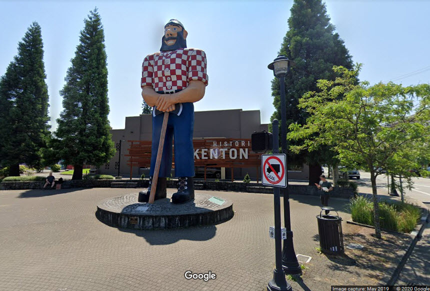 Across the street from the station is this 31 foot tall statue of Paul Bunyan, erected in 1959!