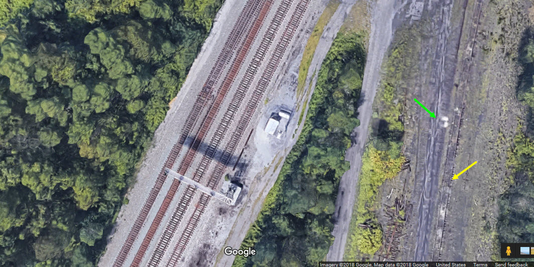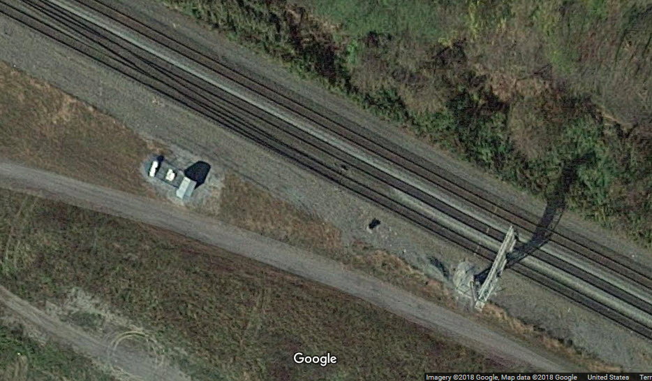 tracks for a small yard. Three mast mounted PL signals are for WB (SB mapwise) traffic. We got 2 tracks on the mainline, and 3 in the yard. The 3