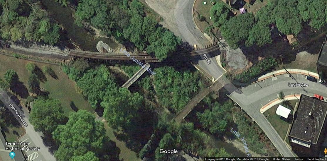 Between Huntingdon and Tyrone, the tracks crossed the Little Juniata 15 times, requiring more bridges in that 20 mile stretch than in the previous 200 miles from