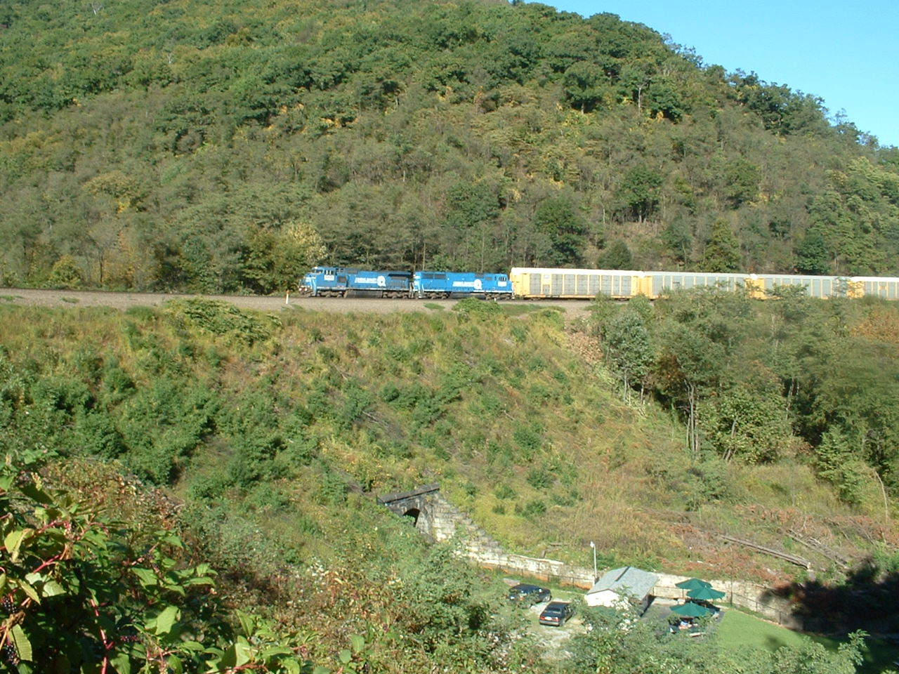 There are about 50 trains a day that use the Curve. Many westbound freights use helpers, which cut off at Cresson.