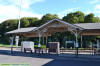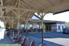 plan, the brick depot sports a simple gabled roof and a two tone paint scheme of white walls above a brown base.
