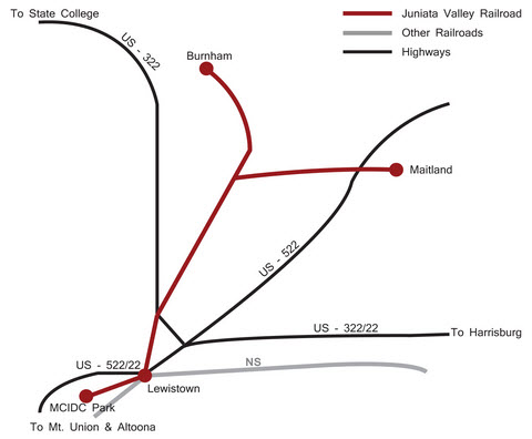 In General (all of these descriptions are from Wikipedia): The Juniata Valley RR (reporting mark JVRR) is part of the