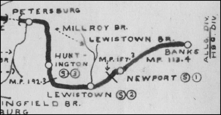 NS in Lewistown and Northumberland, as well as an indirect connection to the Canadian Pacific.