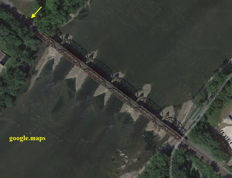 miles along the west side of the river to the end of the bridge at