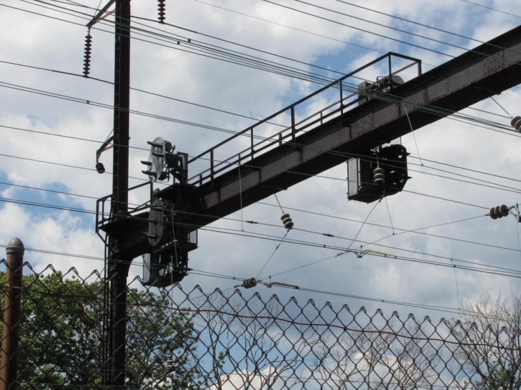 looking west, comes this great photo of the track, signals, and overhead wire