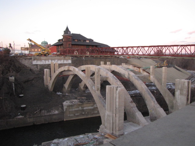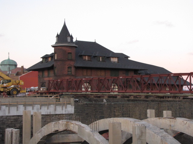 by, guess they wanted to maximize the property usage..... The building is the Dickson Manufacturing Company, one of the first steam locomotive manufacturing company's around (and also seen in 'The Office' opening credits)