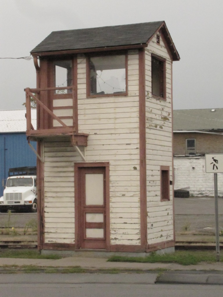 Very little info, no, scratch that, I haven't seen any info on this tiny little tower, but somehow, it manages to survive. A couple of the seconf florr windows have recently been busted out. The tracks north of this yard appear to be unused, and the crossing gates are in terrible shape, as can be seen by the photos below. These gates are typical of all of the crossings up to the "interlocking" a few blocks north.