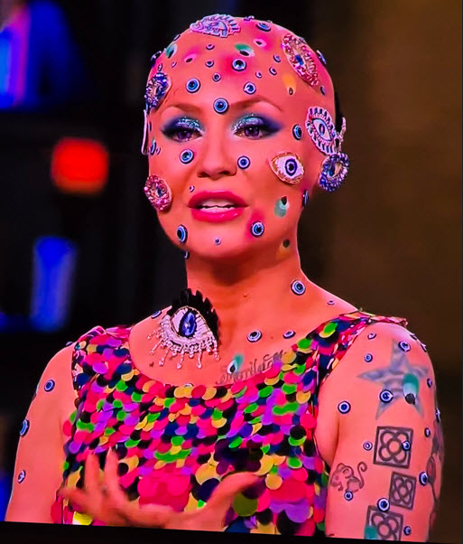 The one lady is a judge on one of them thar baking shows, theme: The Eyes Have It.