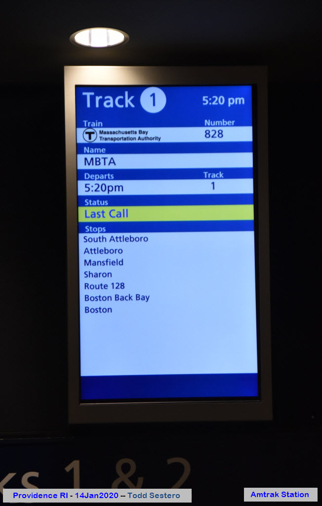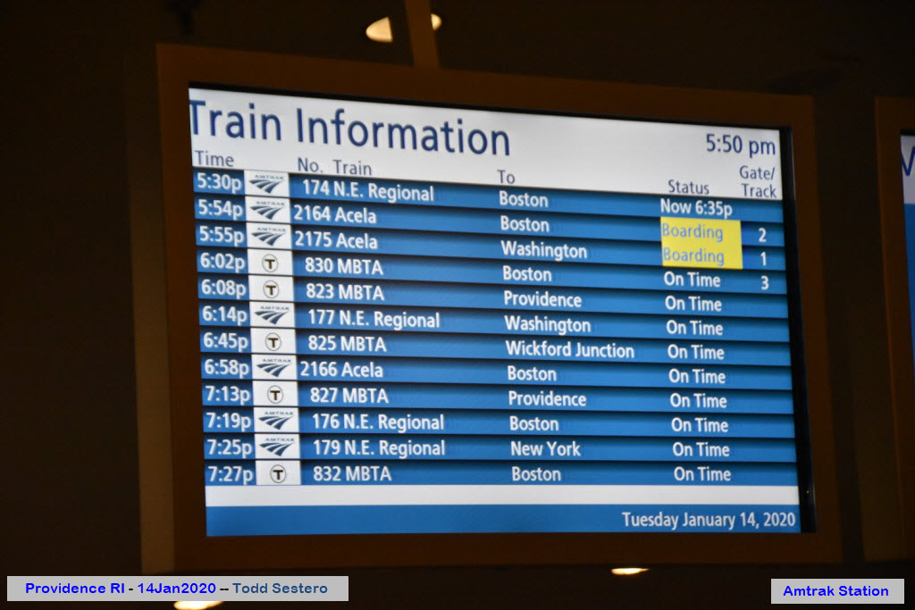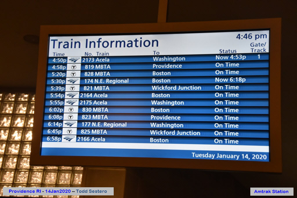 From Wikipedia: Providence is a railroad station in Providence RI, served by Amtrak and MBTA Commuter Rail. The station has four tracks and two island platforms for
