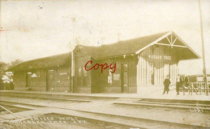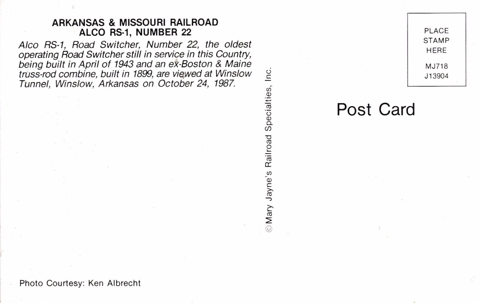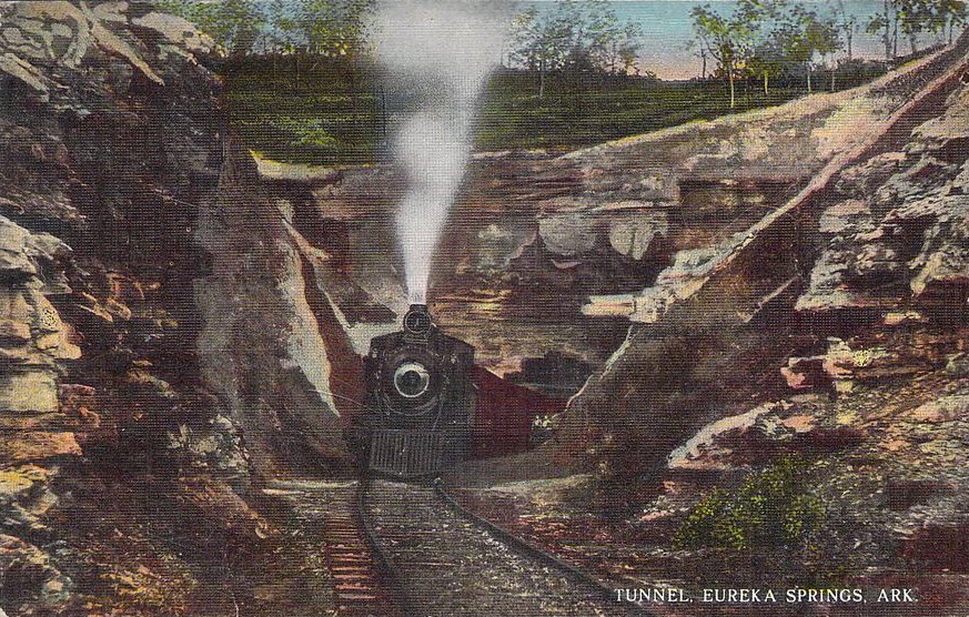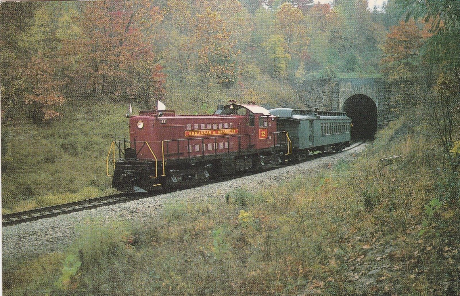 from EBay user: tejas-postcards-sportscards An Arkansas & Missouri train with supposedly the oldest operating road