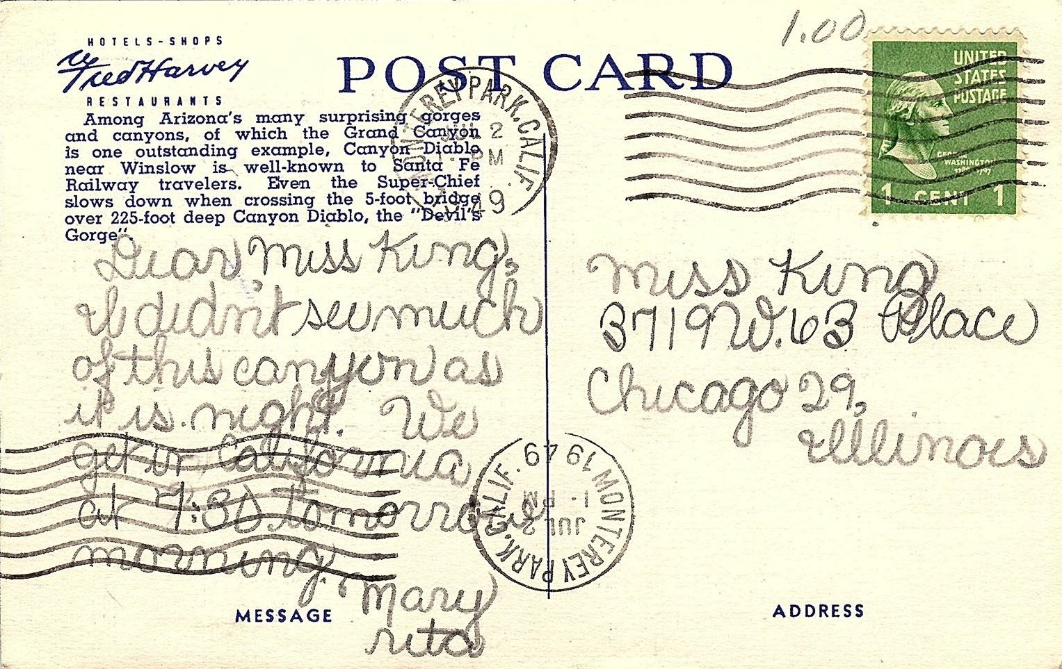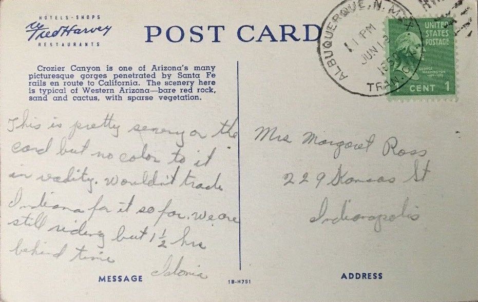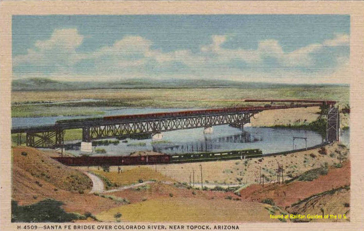 The postcard is from an era when the interstate didn't exist! The bridge is south of Topock.