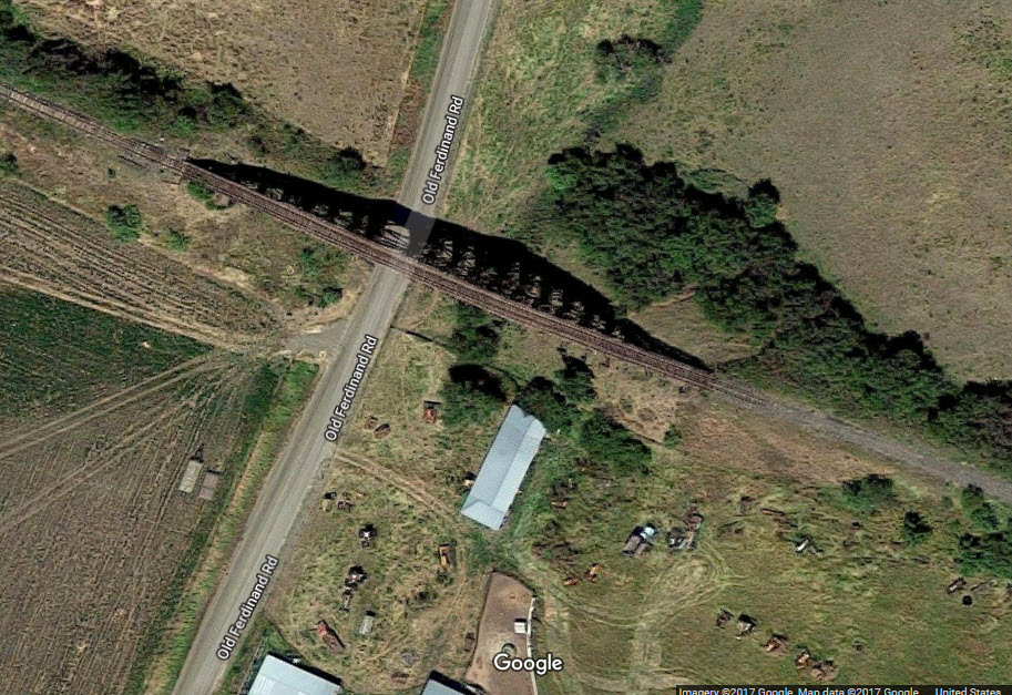 The railroad north of Ferdinand looks like it has been abandoned, but trestles remain.....