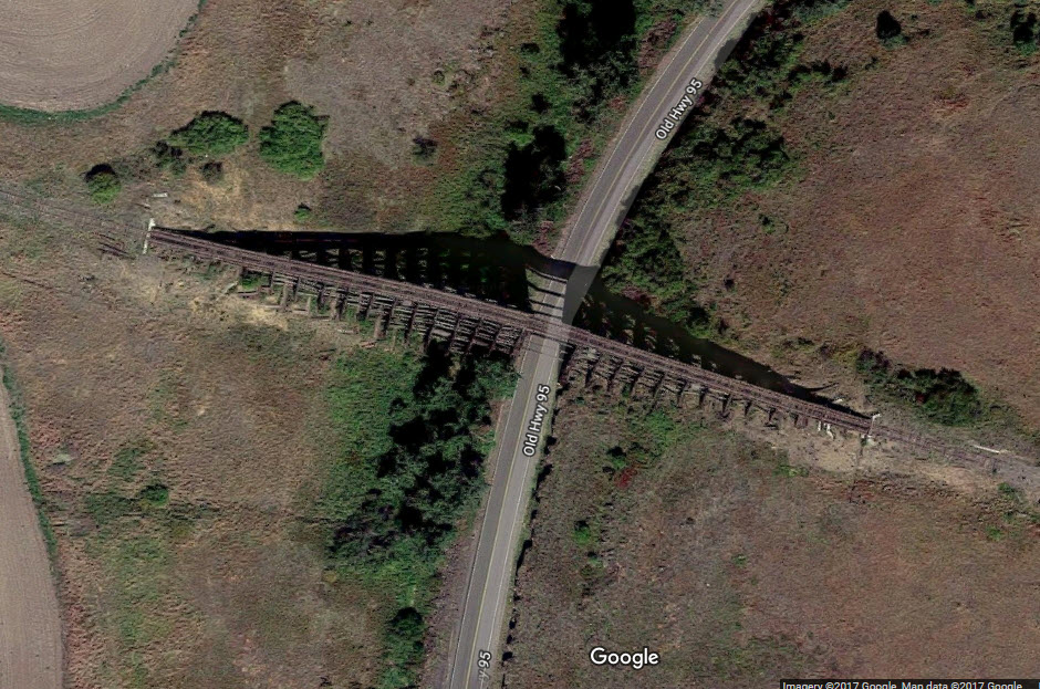 It is hard to tell which one of the trestles below this one is from the aerial shots..... but I'm going to pick where it crosses old Hwy 95