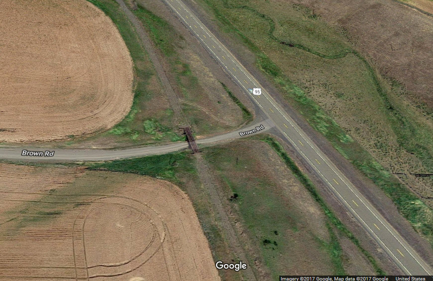 Where the R-O-W crosses US 95, in the aerial photo, you can see the tracks have been removed, and the crossing paved over