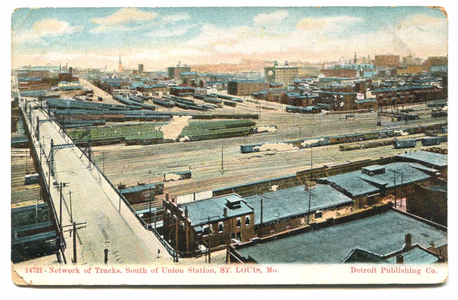 tornado and rebuilt. The postcard below from 1908 shows the second version of the first bridge. It was later replaced by the Second Hannibal Bridge 200 feet