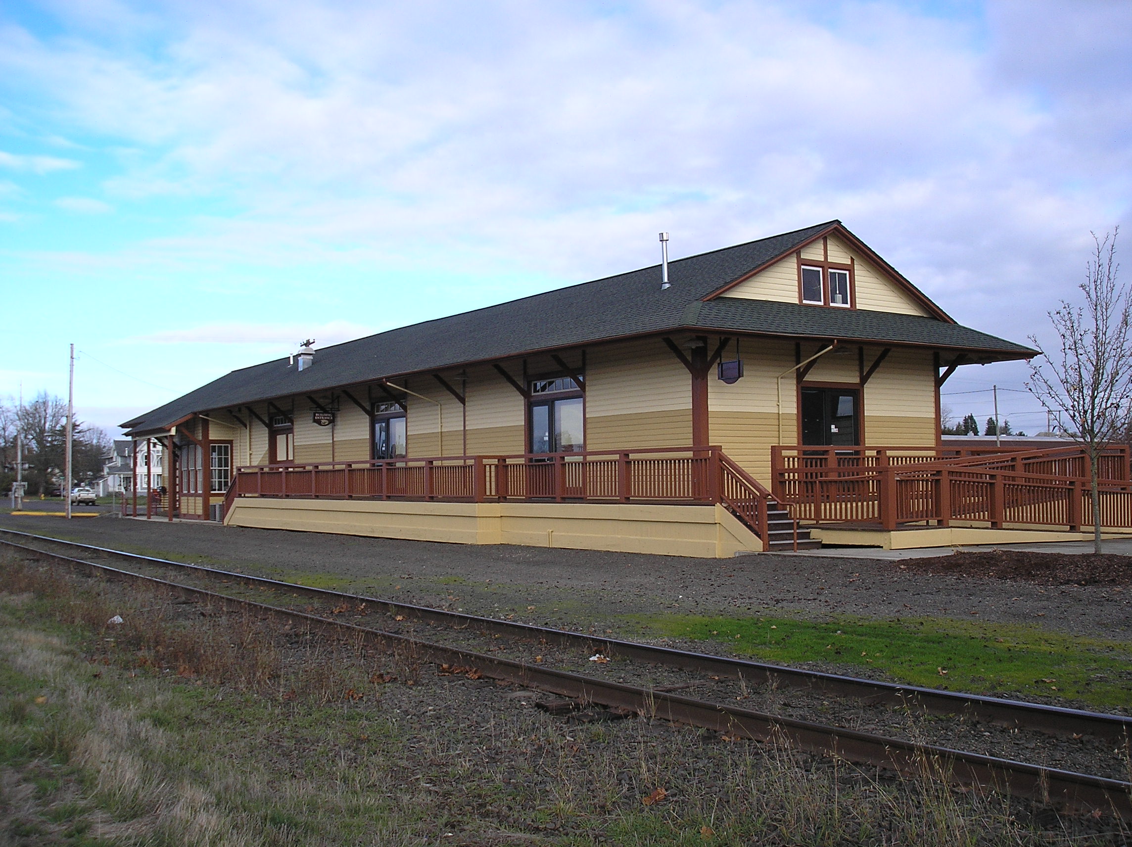 Station built by the Southern Pacific in the 1920's, renovated and moved here in 2010. "Amshed" built in 2004. About 11-1/2 miles south of Portland.