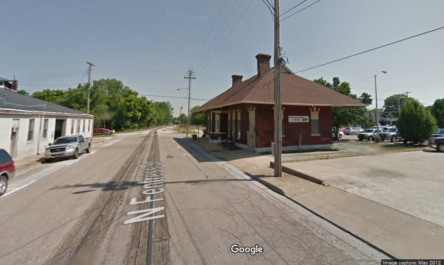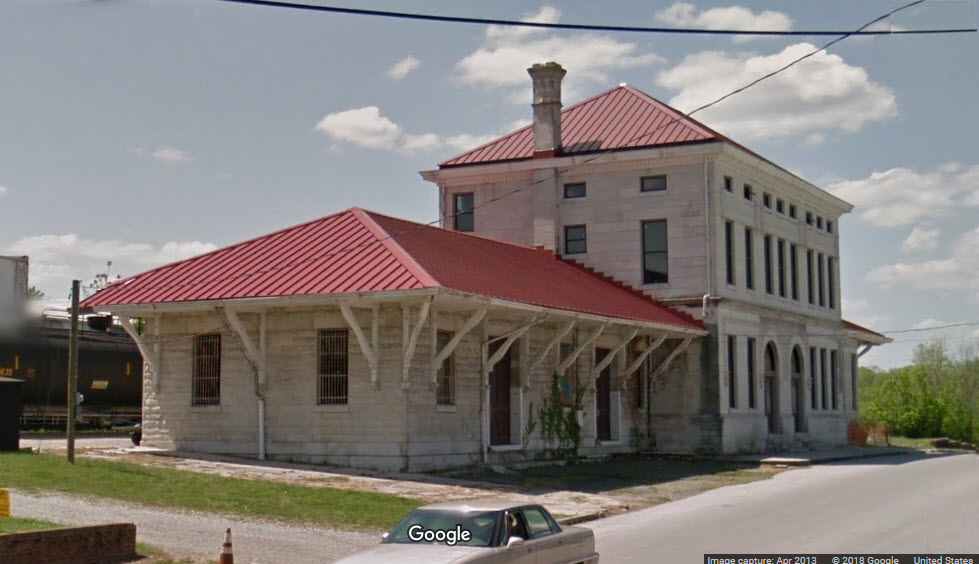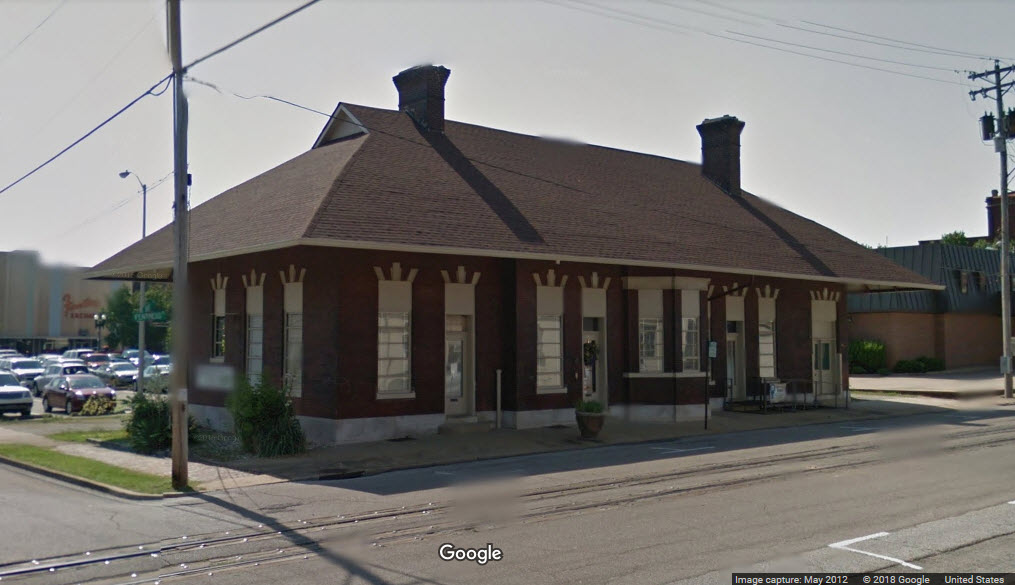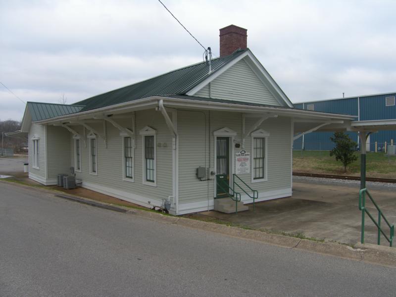 This brick depot was originally built by NC&StL. The depot was built in 1896 and service ran until 1951. Today, the depot houses a tax business. The tracks run