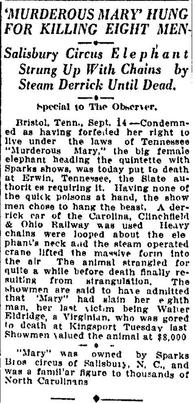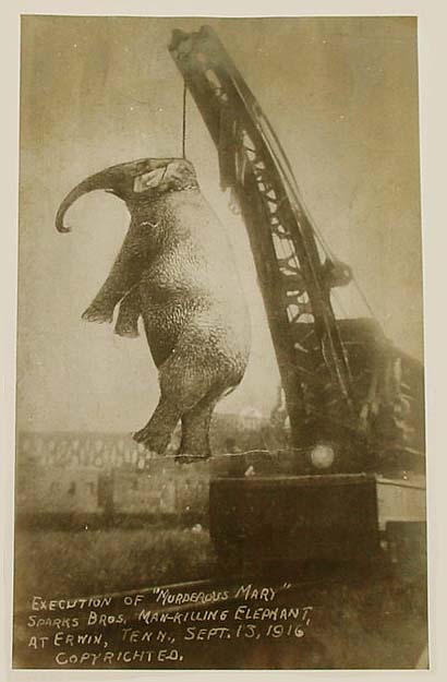 Back in the early 1900's when a circus came to Kingsport TN, an elephant went "crazy" and wound up killing its trainer. The punishment at the time was