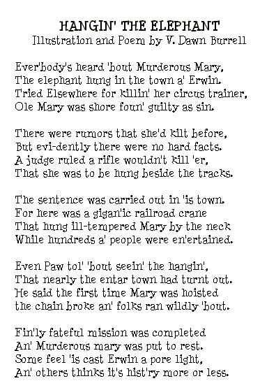 hanging, so after a quick trial, the elephant was sentenced to death by hanging. The only problem was: there was no gallows strong enough to support the weight of