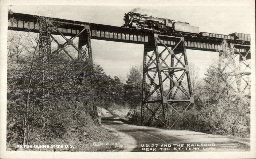 I tried to find where this trestle was/is, and couldn't, mainly because near the TN-KY border today, along US27, is a double-track Norfolk Southern mainline,