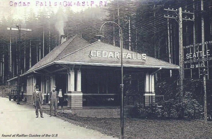 OR&N Depot was jacked up and moved on roller logs pulled by horse and capstan