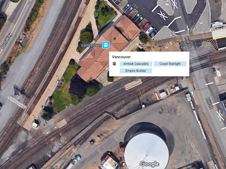 Here are the cities served in Washington state by the three Amtrak trains: