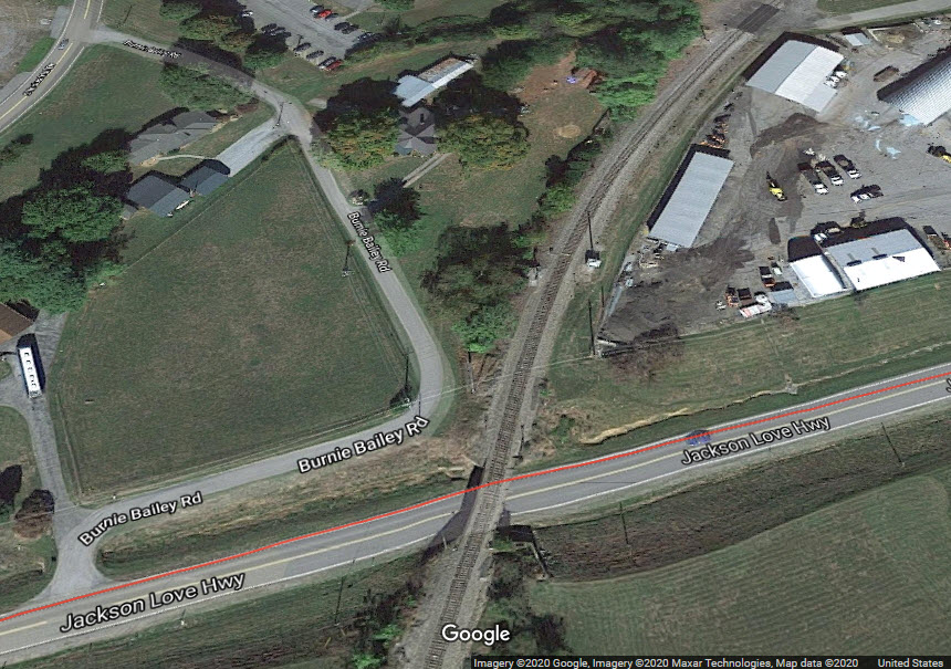 Grant St on the other side of the tracks from McCoury and Zane Whitson Rd (follows it quite a ways - almost into Erwin, on the west and north side of the tracks)