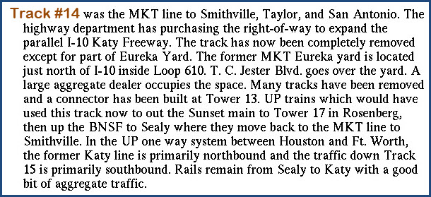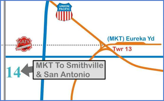 13. Eureka Yard to the east of Tower 13 is an ex MKT yard.