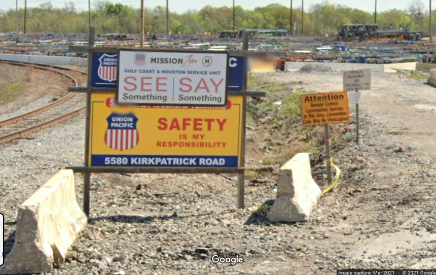 GPS Coordinates: 29.80406, -95.28861 (at the entrance of the yard under I-610)