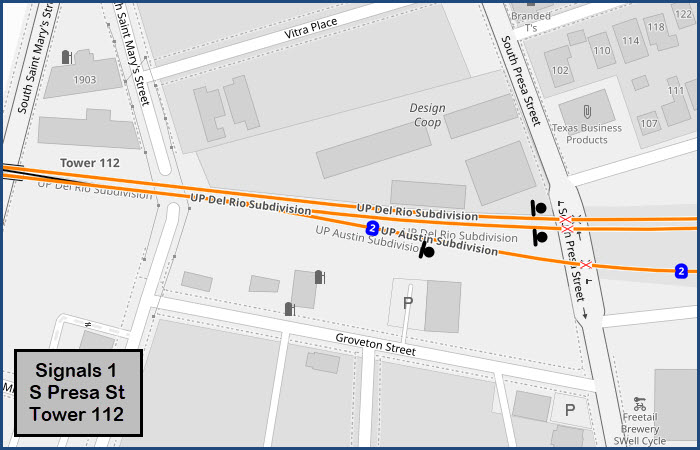 1986-1995? - The Katy tracks were rerouted to share SP's bridge over the San Antonio River, eliminating the Katy bridge (1)