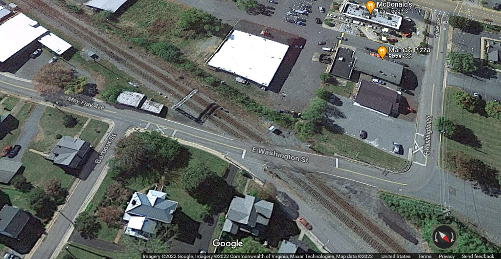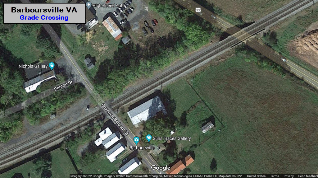 When you get to VA-231, take a right, stop and check out the grade crossing, and then take a left onto VA-655, Jacksontown Rd.