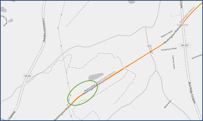 We're going to take a little detour off of VA-20, and take a right onto Weyburn Rd (VA-655), where there are three