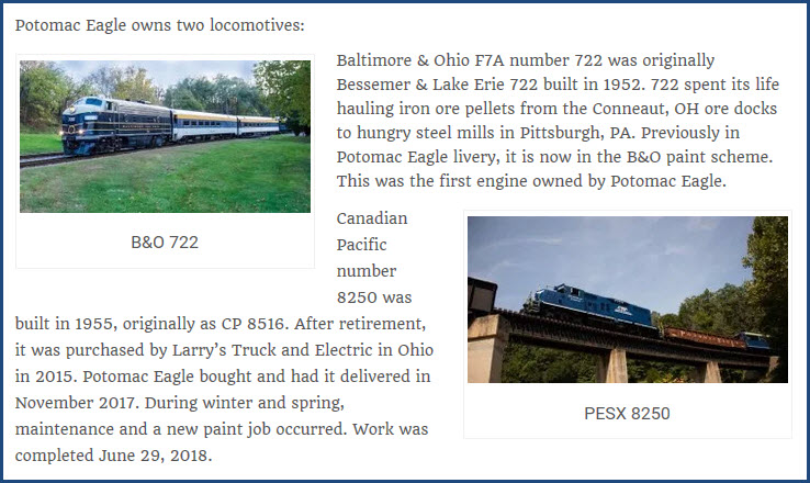 The Potomac Eagle currently runs with two diesel engines as seen below.