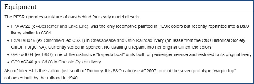 From Wikipedia: The railroad operates excursion trains over a former Baltimore