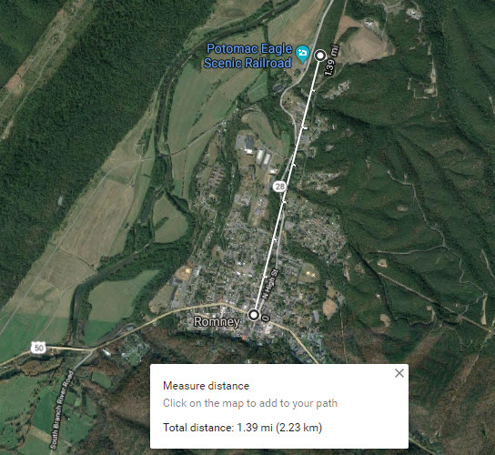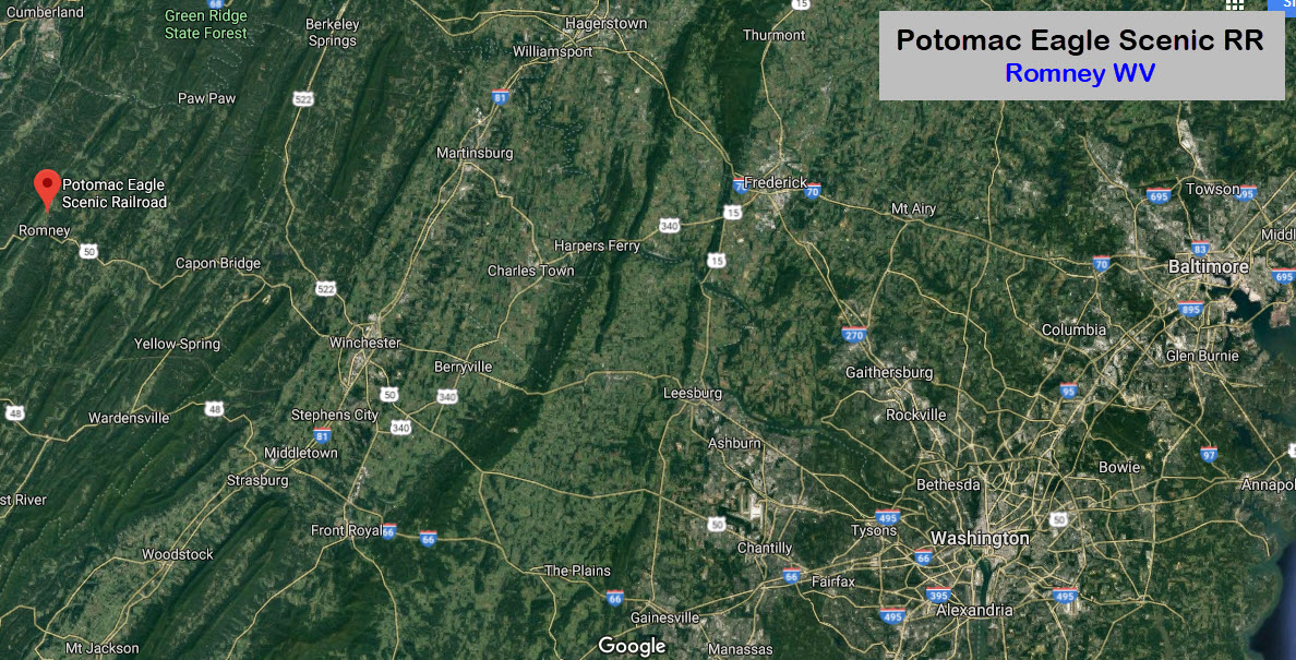 The Potomac Eagle Scenic Railroad is a little over a mile north of Romney WV.