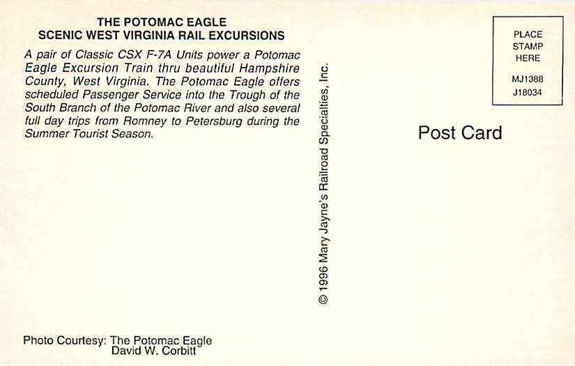 All trains depart from Wappocomo Station, 1.5 miles north of Romney on WV 28.