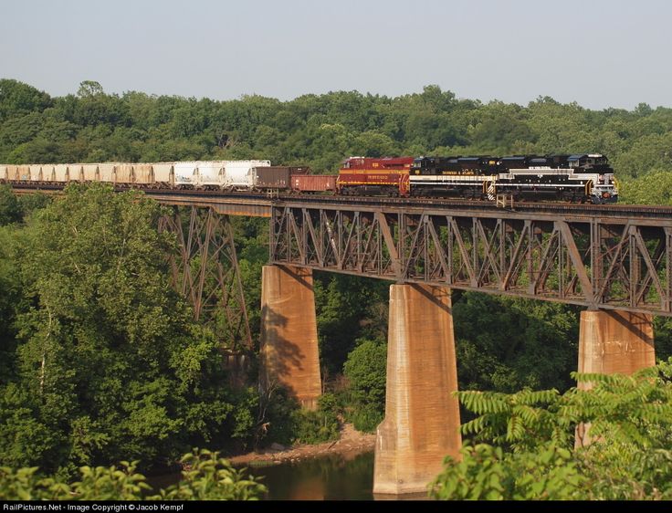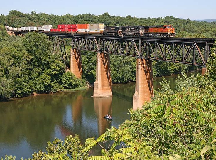 River on a single track bridge. The trestle itself is ~1455ft long,