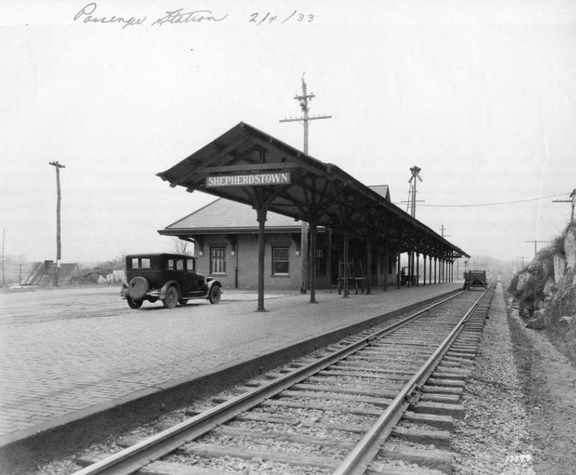Shenandoah Valley Railroad was just coming through on its way to Hagerstown and a small frame site was built near the site of the present station. Shortly afterward, slate curbing