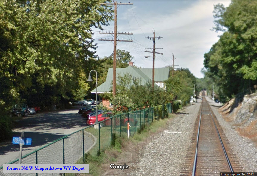 The Shepherdstown depot sits between E German and E High Sts, on Audrey Eagle Drive. The N&W Rwy built the station in 1909. At the time, the waiting rooms and